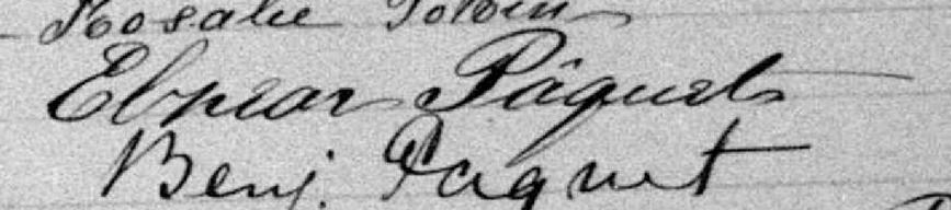 Il est aussi connu sous le nom de Elzéar Pâquet 1, 2, 3. Il est aussi connu sous le nom de Elzéard Pâquet 4. Il est aussi connu sous le nom de Joseph-Elzéar Pâquet. Il est baptisé Joseph Eléazar Pâquet 5. Il est le fils de Olivier Paquet 5 et Marie Demers 5. Il est le filleul de Marcelline Lambert 5 et Ignace Paquet 5.