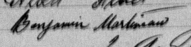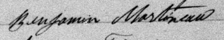 Il est aussi connu sous le nom de Benj. Martineau 1. Il est baptisé Benjamin Martineau 2, 3, 4, 5, 6, 7, 8, 9, 10, 11, 12, 13, 14, 15, 16, 17, 18, 19, 20, 21, 22, 23, 24, 25, 26, 27, 28, 29, 30, 31. Il signe Benj Martineau 18, 22, 24, 25, 26, 27, 29, 30. Il est le fils de Pierre Martineau 2, 4 et Vénérande Simoneau 2, 4. Il est le filleul de Clarisse Fréchette 2 et Benjamin Filteau 2.