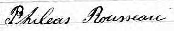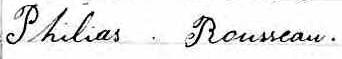 Il est aussi connu sous le nom de Philias Rousseau 1, 2. Il est aussi connu sous le nom de Philéas Rousseau 3, 4, 5, 6, 7, 8, 9, 10, 11, 12, 13, 14, 15, 16, 17, 18, 19. Il est baptisé Jean Baptiste Philias Rousseau 20. Il signe Philias Rousseau 12, 13. Il signe Phileas Rousseau 14, 21. Il est le fils de Isaï Rousseau 14, 20 et Rose Martineau 20. Il est le filleul de Rosalie Lacasse 20 et François Mercier 20.