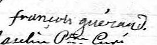 Il est présent lors du baptême de Marie Luce Guerard le 12 juin 1800 à Sainte-Famille, Sainte-Famille-de-l'Île-d'Orléans par Jean-Baptiste Gatien 3. Il est présent lors du mariage de Marie Thécle Drouin et François Dion célébré par Joseph Gagnon le 10 novembre 1800 à Sainte-Famille, Sainte-Famille-de-l'Île-d'Orléans 4, 25, 26, 27, 28, 29. Il est présent lors du baptême de Marie Collete Guérard le 13 mars 1805 à Sainte-Famille, Sainte-Famille-de-l'Île-d'Orléans par Jean-Baptiste Gatien 5. Il est présent lors du mariage de Géneviève Drouin et Laurent Gosselin célébré par Jean-Baptiste Gatien le 23 juillet 1805 à Sainte-Famille, Sainte-Famille-de-l'Île-d'Orléans 17. Il est présent lors du baptême de François-Xavier Guérard le 16 mars 1810 à Sainte-Famille, Sainte-Famille-de-l'Île-d'Orléans par Joseph Gagnon 12. Il est présent lors du baptême de Marie Adélaïde Primont le 7 octobre 1810 à Sainte-Famille, Sainte-Famille-de-l'Île-d'Orléans par Joseph Gagnon 18. Il est présent lors du mariage de Marie Eugène Guérard et Jean Baptiste Asselin célébré par Joseph Gagnon le 8 février 1813 à Sainte-Famille, Sainte-Famille-de-l'Île-d'Orléans 1, 31, 32, 33, 34, 35, 36, 37, 38, 39, 40, 41, 42, 43, 44, 45, 46, 47, 48, 49, 50, 51, 52, 53, 54, 55, 56, 57. Il est présent lors du mariage de Marie Luce Guerard et François Guïon célébré par Joseph Gagnon le 17 novembre 1818 à Sainte-Famille, Sainte-Famille-de-l'Île-d'Orléans 6, 58, 59, 60, 61, 62, 63, 64. Il est présent lors du mariage de Marie Reparate Guerard et André Asselin célébré par Joseph Gagnon le 10 octobre 1820 à Sainte-Famille, Sainte-Famille-de-l'Île-d'Orléans 13, 21, 65, 66, 67, 68, 69, 70, 71, 72, 73, 74, 75, 76, 77, 78, 79, 80, 81, 82. Il est présent lors du mariage de Marie Collete Guérard et Joseph Poulin célébré par Joseph Gagnon le 20 juillet 1824 à Sainte-Famille, Sainte-Famille-de-l'Île-d'Orléans 2, 8, 38, 83, 84, 85, 86, 87. Il est présent lors du mariage de Josephte Asselin et Jean-Baptiste Primont célébré par Joseph Gagnon le 9 février 1830 à Sainte-Famille, Sainte-Famille-de-l'Île-d'Orléans 14, 88, 89, 90, 91, 92, 93, 94, 95, 96, 97, 98, 99, 100. Il est présent lors du mariage de Thérèse Faucher et François-Xavier Guérard célébré par Joseph Gagnon le 19 juillet 1831 à Sainte-Famille, Sainte-Famille-de-l'Île-d'Orléans 7, 73, 101, 102, 103. Il est présent lors du mariage de Genevieve Vesina et Joseph Poulin célébré par Joseph Gagnon le 19 juillet 1831 à Sainte-Famille, Sainte-Famille-de-l'Île-d'Orléans 8, 104, 105, 106, 107, 108, 109, 110, 111, 112, 113, 114, 115, 116, 117, 118, 119. Il est présent lors du mariage de Marie Bureau dite Sanssoucie et Pierre Martineau célébré par Joseph Gagnon le 12 avril 1836 à Sainte-Famille, Sainte-Famille-de-l'Île-d'Orléans 15. Il est présent lors du mariage de Marie Olive Deblois et Jean Baptiste Martineau célébré par Jean-Baptiste Chartré le 3 août 1841 à Sainte-Famille, Sainte-Famille-de-l'Île-d'Orléans 16, 101, 120, 121, 122, 123, 124, 125, 126, 127, 128, 129, 130, 131, 132, 133, 134, 135, 136, 137. Il est présent lors du mariage de Marie Birgitte Faucher et François Xavier Drouin célébré par Joseph Asselin le 31 janvier 1842 à Sainte-Famille, Sainte-Famille-de-l'Île-d'Orléans 19, 138, 139, 140.