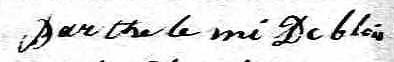Il est aussi connu sous le nom de Barthelemy Deblois 1, 2, 3, 4. Il est aussi connu sous le nom de Barthelemi Deblois 5, 6, 7, 8, 9, 10, 11, 12, 13, 14, 15, 16. Il est aussi connu sous le nom de Berthélemi Deblois 17. Il est aussi connu sous le nom de Barthélemy Deblois 10, 13, 18, 19, 20, 21, 22. Il est aussi connu sous le nom de Barthelemi Deblois dit Grégoire 23, 24, 25, 26, 27, 28. Il est aussi connu sous le nom de Barthélemi Deblois dit Grégoire 14. Il est aussi connu sous le nom de Barthèlemi Deblois dit Grégoire 25. Il est aussi connu sous le nom de Bathélemy Deblois 29. Il est aussi connu sous le nom de Barthélémy Deblois 30. Il est baptisé Francois Barthelemi Deblois 31. Il signe B. Deblois 1, 32. Il signe Barthélemi Deblois 5, 6, 7, 9, 32, 33, 34, 35, 36, 37. Il signe Barlte Debloi 4. Il est le fils de François Deblois dit Gregoire 6, 16, 23, 31 et Thérèse Boscher 6, 31. Il est le filleul de Marguerite Asselin 31 et Ambroise Deblois 31.