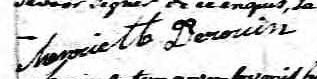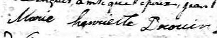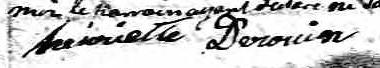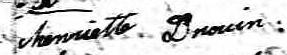 Elle est aussi connue sous le nom de Henriette Drouin 1, 2, 3, 4, 5, 6. Elle est aussi connue sous le nom de Marie Henriette Derouin 7. Elle est baptisée Marie Henriette Drouin 4, 7, 8. Elle signe Henriette Derouin 1, 2, 3, 5, 9. Elle est la fille de Jean Baptiste Drouin 7, 8 et Marie Guerard 7, 8. Elle est la filleule de Mari-Anne Gosselin 8 et Jean Baptiste Drouin 8.
