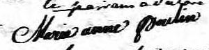 Elle est aussi connue sous le nom de Mari-Anne Poulin 1. Elle est aussi connue sous le nom de Marianne Poulin 2. Elle est aussi connue sous le nom de Demoiselle Marie-Anne Poulin 3. Elle signe Marie Anne Poulin 1, 2, 3.