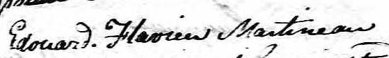 Il est aussi connu sous le nom de Sieur Edouard Flavien Martinaux 1. Il est aussi connu sous le nom de Sieur Édouard Flavien Martinault 2. Il est aussi connu sous le nom de Ed.-Flavien Martineau. Il est aussi connu sous le nom de Écuyer Edouard-Flavien Martineaux 3. Il est aussi connu sous le nom de Sieur Flavien Edouard Martineau 4. Il est aussi connu sous le nom de Sieur Edouard-Flavien Martineau 5. Il est aussi connu sous le nom de Sieur Édouard Martinaux 6. Il est aussi connu sous le nom de Sieur Édouard Flavien Martineau 7. Il signe Edouard Flavien Martineau 1, 2. Il signe Edouard Fl. Martineau 3, 5. Il signe Ed. Fl. Martineau 4. Il signe Edouard. Fl. Martineau 7. Il est le fils de Jérôme Martineau et Angèle Legris.