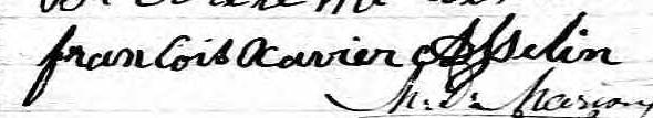 Il est le parrain de François Xavier Asselin 1. Il est le parrain de François Xavier Poulin 4. Il est le parrain de Joseph Asselin 38. Il est le parrain de Marie Anne Eleonore Primont 24. Il est le parrain de François Xavier Anselme Asselin 26. Il est le parrain de Marie Alice Corine Létourneau 41.