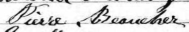 Il est aussi connu sous le nom de Pierre Boscher dit Morency 1. Il est aussi connu sous le nom de Pierre Morancy 2. Il est aussi connu sous le nom de Pierre Morency 3, 4, 5, 6, 7, 8, 9, 10, 11, 12. Il est aussi connu sous le nom de Pierre Baucher dit Morency 13, 14, 15. Il est baptisé Pierre Boscher 16. Il signe Pierre Beaucher 13, 17. Il signe Pierre Beaucher dit Morency 11, 15, 18, 19. Il signe Pierre Maurency 8, 9, 18. Il est le fils de Pierre Baucher dit Morency 13, 16 et Marie Savoie 13, 16. Il est le filleul de Geneviève Savoie 16 et Joseph Baucher dit Morency 16.