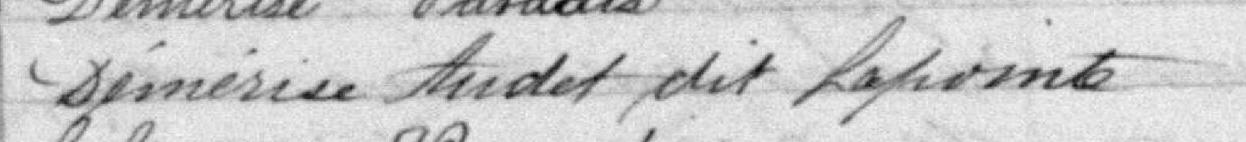 Elle est aussi connue sous le nom de Démérise Audete 1. Elle est aussi connue sous le nom de Démerise Audet 2. Elle est aussi connue sous le nom de Démérise Lapointe 3. Elle est aussi connue sous le nom de Marie Demerise Audet dite Lapointe 4. Elle est aussi connue sous le nom de Desmérises Audette 5. Elle est aussi connue sous le nom de Démérise Audet 6. Elle est aussi connue sous le nom de Démérise Audet dite Lapointe 7, 8. Elle est aussi connue sous le nom de Demerise Lapointe 9. Elle est aussi connue sous le nom de Démerise Lapointe 10. Elle est baptisée Marie Demerise Audet-Lapointe 11. Elle signe Marie Démérise Audet dite Lapointe 4.