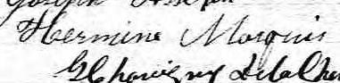 Elle est présente lors du baptême de Démerise Marquis le 20 août 1862 à Sainte-Famille, Sainte-Famille-de-l'Île-d'Orléans par François-Xavier Méthot 3.
