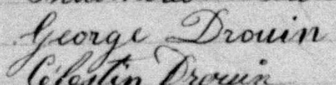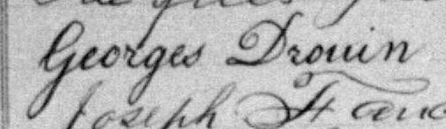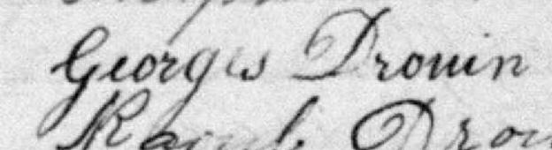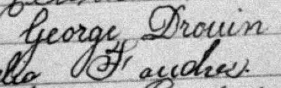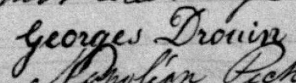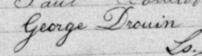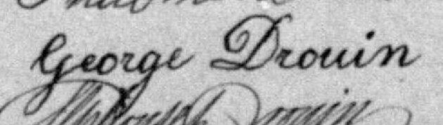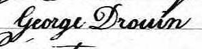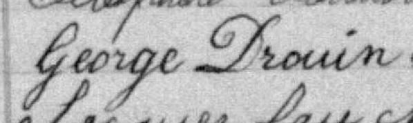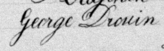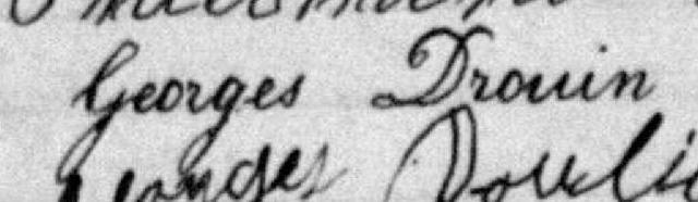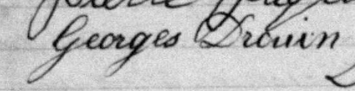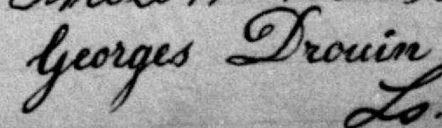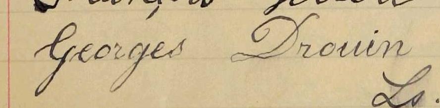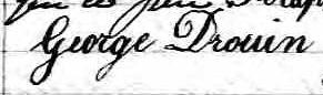 Il est aussi connu sous le nom de Georges Drouin 1, 2, 3, 4, 5, 6, 7, 8, 9, 10, 11, 12, 13, 14, 15, 16, 17, 18. Il est aussi connu sous le nom de George Drouin 2, 3, 4, 8, 9, 10, 11, 15, 17, 19, 20, 21, 22, 23, 24, 25, 26, 27, 28, 29, 30. Il est aussi connu sous le nom de Sieur Georges Drouin 31. Il est aussi connu sous le nom de Sieur George Drouin 27. Il est baptisé Georges Edouard Drouin 32. Il est le fils de Jean Baptiste Drouin 22, 32 et Justine Côté 22, 32. Il est le filleul de Marguerite Breton 32 et Joseph Côté 32.
