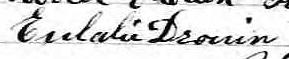 | Marie Eulalie Drouin (1854 - ) | Louis-Olivier Drouin (1820 - ) | Joseph Drouin (1785 - 1861) | Jean Baptiste Drouin (1756 - 1836) | Joseph Drouin (1721 - ) |