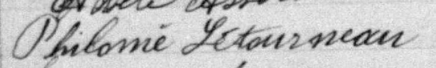 Elle est aussi connue sous le nom de Phliomène Létourneau 1. Elle est aussi connue sous le nom de Philomé Létourneau 2. Elle est aussi connue sous le nom de Philomène Letourneau 3. Elle est aussi connue sous le nom de Philomene Letourneau 4. Elle est baptisée Philomène Létourneau 5, 6, 7, 8, 9. Elle est la fille de François Xavier Létourneau 5 et Philomène Baucher dite Morency 5. Elle est la filleule de Françoise Canac 5 et Jean-Baptiste Létourneau 5.