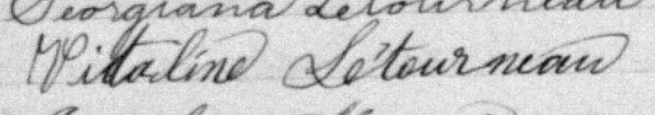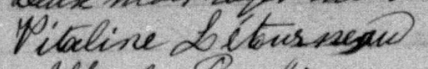 Elle est aussi connue sous le nom de Vitaline Létourneau 1, 2, 3, 4, 5, 6, 7, 8, 9, 10, 11. Elle est aussi connue sous le nom de Vitaline Letourneau 3, 12, 13. Elle est aussi connue sous le nom de Dame Vitaline Létourneau 14. Elle est aussi connue sous le nom de Vitaline Poulin 15, 16. Elle est aussi connue sous le nom de Marie Vitaline Létourneau 10, 11, 17, 18, 19, 20. Elle est aussi connue sous le nom de Julie Vitaline Létourneau 21. Elle est baptisée Marie Julie Vitaline Létourneau 4, 22, 23, 24, 25, 26, 27. Elle est la fille de François Xavier Létourneau 4, 22 et Philomène Baucher dite Morency 4, 22. Elle est la filleule de Jeulie Létourneau 22 et Jean-Baptiste Létourneau 22.