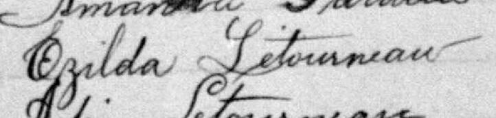 Elle est aussi connue sous le nom de Ezilda Létourneau 1, 2, 3, 4, 5, 6, 7, 8, 9, 10. Elle est aussi connue sous le nom de Marie Ezilda Létourneau 10, 11. Elle est aussi connue sous le nom de Ezilda Letourneau 12. Elle est aussi connue sous le nom de Azilda Létourneau 13. Elle est baptisée Marie Auxilda Létourneau 14. Elle signe M. Exilda Létourneau 11. Elle est la fille de Joseph Vital Létourneau 8, 10, 14 et Delphine Vaillancourt 8, 10, 14. Elle est la filleule de Marie Vaillancourt 14 et Pierre Cyrille Primont 14.