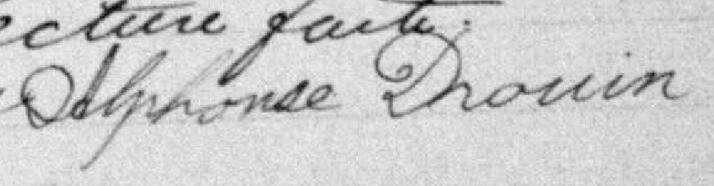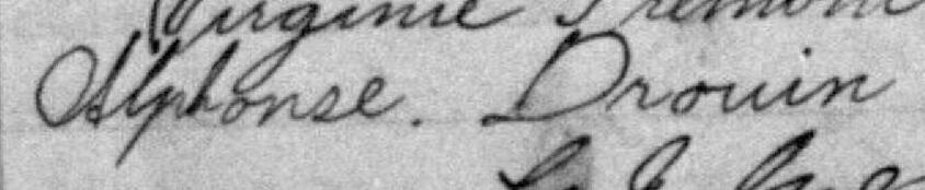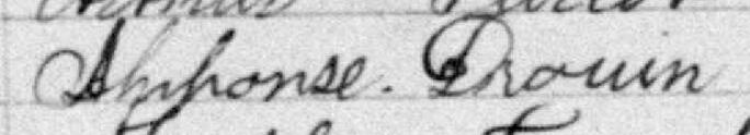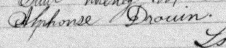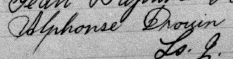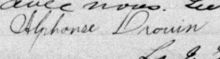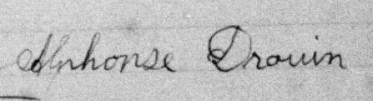 Il est aussi connu sous le nom de Alphonse Drouin 1, 2, 3, 4, 5, 6, 7, 8, 9, 10, 11, 12, 13, 14, 15, 16, 17, 18. Il est baptisé Louis Alphonse Drouin 8, 10, 12, 14, 17, 19, 20. Il est le fils de Pierre Célestin Derouin 3, 8, 19 et Elise Leblond 3, 8, 19. Il est le filleul de Marie Drouin 19 et Louis Beaucher dit Morency 19.