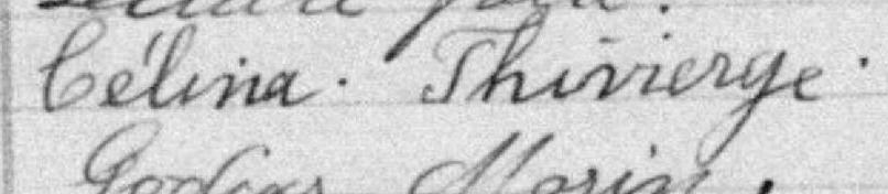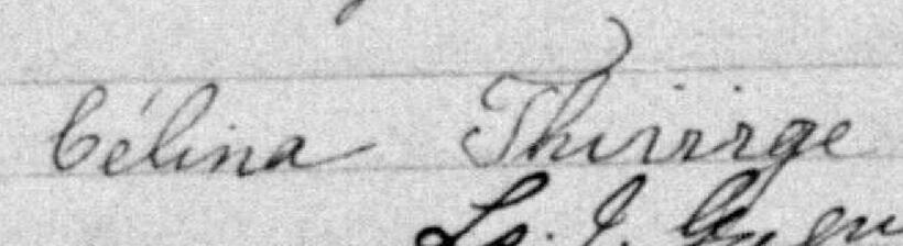 Elle est aussi connue sous le nom de Marie-Céline Thivierge. Elle est aussi connue sous le nom de Célina Thivierge 1, 2, 3, 4, 5, 6, 7, 8, 9, 10, 11, 12, 13, 14, 15, 16, 17, 18, 19, 20, 21, 22. Elle est aussi connue sous le nom de Celina Thivierge 23. Elle est aussi connue sous le nom de Célinas Thivierge 24. Elle est aussi connue sous le nom de Célina Pichet 25. Elle est aussi connue sous le nom de Marie Célina Thivierge 26. Elle est aussi connue sous le nom de Celina Pichette 27. Elle est aussi connue sous le nom de Célina Pîchette 28. Elle signe Célina Thiviege 2. Elle signe Célina Thivirge 4, 5. Elle signe Celina Thiviege 6. Elle est la fille de François-Xavier Thivierge et Cécile Audet.