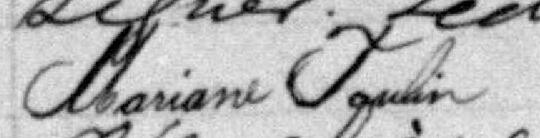 Elle est aussi connue sous le nom de Mariane Poulin 1, 2. Elle est baptisée Marie Anne Poulin 2, 3. Elle est la fille de Jacques Poulin 3 et Marie Anne Drouin 3. Elle est la filleule de Victoria Paulin 3 et Hubert Royer 3.