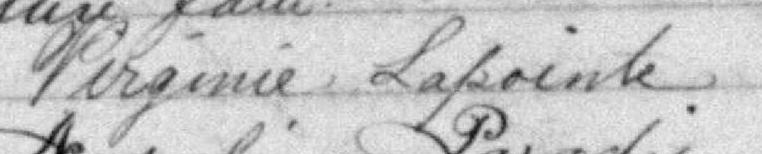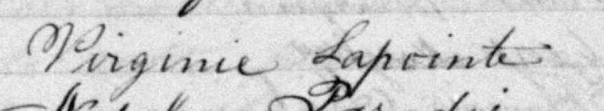 Elle est aussi connue sous le nom de Virginie Audet dite Lapointe 1, 2. Elle est aussi connue sous le nom de Virginie Lapointe 1, 3, 4, 5, 6. Elle est baptisée Marie Virginie Audet 7.