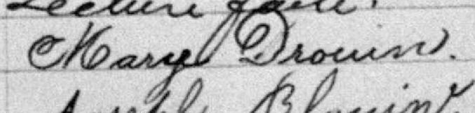 Marie Drouin est écolière en 1881 3. Jean-Baptiste Drouin, Marie Anne Adélaïde Drouin, Joseph Seraphin Drouin, Marie Drouin, Marie Adelaïde Drouin, Marie Alphonsine Drouin, Adèle Vaillancourt, Justine Côté et Joseph Séraphin Drouin résident à Sainte-Famille-de-l'Île-d'Orléans, Montmorency, Québec en 1881 22. Marie Drouin est de religion catholique de 1881 à 1901 3, 5, 16. Elle est d'origine ethnique française de 1881 à 1901 3, 16. Marie Drouin réside à Sainte-Famille, Sainte-Famille-de-l'Île-d'Orléans en 1889 2. Étienne Derouin, Bernadette Drouin, Marie Anne Adélaïde Drouin, Joseph Seraphin Drouin, Marie Drouin, Marie Eléonore Dorilda Létourneau, Jean Firmin Wilfrid Létourneau, Adèle Vaillancourt et Firmin Létourneau résident dans une maison de pierres d'un étage de 9 pièces à Sainte-Famille-de-l'Île-d'Orléans en 1891 38. Elle sait lire et écrire de 1891 à 1901 5, 16. Marie Drouin et Joseph Blouin résident à Sainte-Famille, Sainte-Famille-de-l'Île-d'Orléans de 1892 à 1901 6, 7, 8, 9, 10, 11, 12, 13, 14. Elle est de nationalité canadienne en 1901 16. Elle parle français en 1901 16. Léda Beaupré, François Xavier Blouin, Joseph Blouin, Louis Georges Elphège Blouin, Marie Elise Alphonsine Blouin, Joseph Jean-Baptiste Blouin, Marie Caroline Adélaïde Alice Blouin, Marie Drouin et Joseph Blouin résident sur un terrain de 142 arpents avec 1 maison de 5 chambres et 2 bâtiments agricoles à Sainte-Famille-de-l'Île-d'Orléans le 5 avril 1901 39, 40.