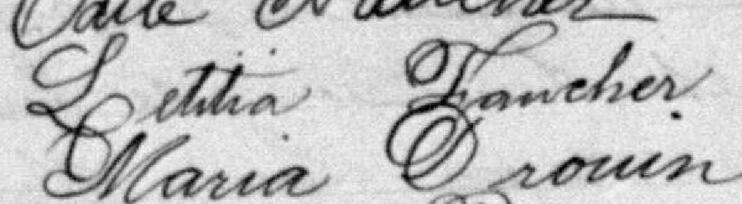 Elle est aussi connue sous le nom de Laetitia Faucher 1, 2, 3. Elle est aussi connue sous le nom de Lethitia Faucher 4. Elle est aussi connue sous le nom de Létitia Faucher 2, 3, 5, 6, 7. Elle est aussi connue sous le nom de Letitia Faucher 8. Elle est aussi connue sous le nom de Laeticia Faucher 9. Elle est baptisée Marie Eva Laetitia Faucher 10. Elle est la fille de Jacques Faucher 10 et Philomène Létourneau 10. Elle est la filleule de Marie Sédulie Faucher 10 et Louis Nazaire Asselin 10.