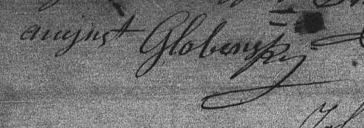 Il est aussi connu sous le nom de Docteur August Globenky 1. Il est aussi connu sous le nom de Augustin Globensky. Il est aussi connu sous le nom de Écuyer Augustin Globensky 2. Il est aussi connu sous le nom de Auguste Globensky. Il signe August Globensky 1.