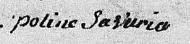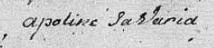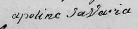 Elle est aussi connue sous le nom de Marie-Apolline Savaria. Elle est aussi connue sous le nom de Appoline Savaria 1, 2, 3, 4. Elle est aussi connue sous le nom de Marie Pauline Savaria 5. Elle est aussi connue sous le nom de Apolline Savaria 6, 7, 8, 9, 10, 11, 12, 13, 14. Elle est aussi connue sous le nom de Apolyne Savarias 15. Elle est aussi connue sous le nom de Marie Apoline Savaria 16, 17. Elle est aussi connue sous le nom de Appolline Savaria 18. Elle est aussi connue sous le nom de Marie Apolline Savaria 19, 20, 21. Elle est aussi connue sous le nom de Marie-Appoline Savaria 22. Elle signe Poline Savaria 7. Elle signe Apoline Savaria 2, 8, 15, 18. Elle signe Apolite 9.