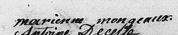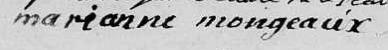 Elle est aussi connue sous le nom de Marie Anne Monjeau 1, 2, 3, 4, 5. Elle est aussi connue sous le nom de Marie-Anne Monjeau 6. Elle signe Marianne Mongeaux 1, 3, 4, 5. Elle signe Maranne Mongeaux 2. Elle signe Marianne Monjeau 6. Elle est la fille de Joseph Mongeau et Marie Louise Bissonnette.
