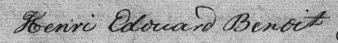 Il est aussi connu sous le nom de Henry Edouard Bénoist 1. Il est aussi connu sous le nom de Henri Edouard Benoit 2, 3, 4, 5, 6. Il est aussi connu sous le nom de Henry Édouard Benoit 7. Il est aussi connu sous le nom de Henry Edouard Benoist 8, 9. Il signe Henry Edouard Benoit 1, 10, 11, 12. Il signe H. Edouard Benoit 3, 4, 5, 7, 8, 9, 12.