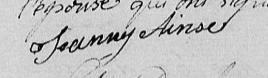 Elle est la marraine de Marie Aimée Ainse 1. Elle est la marraine de Marie Ainse 6. Elle est la marraine de Marie Elmire Aima Pinet 8.