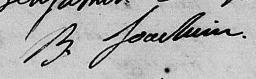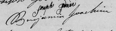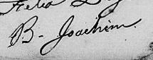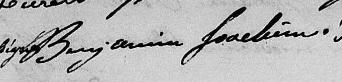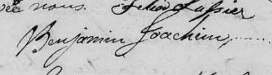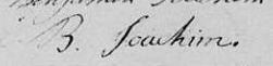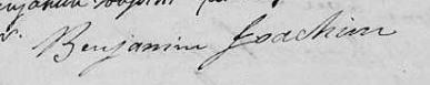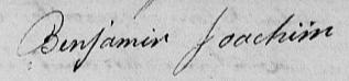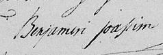 Il est aussi connu sous le nom de Binjamin Joassim 1, 2, 3, 4, 5, 6, 7, 8, 9, 10, 11, 12, 13, 14, 15, 16, 17, 18. Il est aussi connu sous le nom de Benjamin Joassim 19, 20, 21, 22, 23, 24, 25, 26, 27, 28, 29, 30. Il est aussi connu sous le nom de Benjamin Joachim 17, 25, 26, 27, 31, 32, 33, 34, 35, 36, 37, 38, 39, 40, 41, 42, 43, 44, 45, 46. Il est aussi connu sous le nom de Binjamin Joassin 47, 48. Il est aussi connu sous le nom de Benjamin Joachin 32. Il est aussi connu sous le nom de Binjamin Joachim 33, 49. Il signe Benjamin Joassin 15, 16, 20, 21, 24, 30, 50. Il signe B. Joassin 47, 48, 50. Il signe B. Joachim 18, 29, 35, 36, 42, 43, 45, 49.