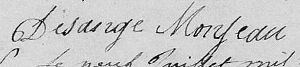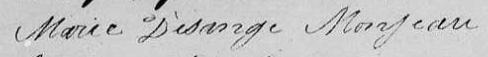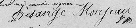 Elle est aussi connue sous le nom de Marie Desanges Monjeau 1, 2, 3. Elle est aussi connue sous le nom de Desange Monjeau 4, 5, 6, 7, 8, 9, 10. Elle est aussi connue sous le nom de Marie Désange Monjeau 11. Elle est aussi connue sous le nom de Marie des Anges Monjeau 12, 13. Elle est aussi connue sous le nom de Désange Monjeau 14, 15, 16, 17. Elle est aussi connue sous le nom de Desanges Monjeau 10, 16, 18, 19. Elle est aussi connue sous le nom de Marie Desanges Monjau 20. Elle est aussi connue sous le nom de Marie Désange Mongeau 21. Elle est aussi connue sous le nom de Marie Desanges Mongeau 22. Elle est aussi connue sous le nom de Marie Desanges Monejau 15. Elle est aussi connue sous le nom de Marie-Des-Anges Monjeau 17. Elle est aussi connue sous le nom de Désanges Monjeau 23. Elle est aussi connue sous le nom de Marie-Désanges Mongeau. Elle signe Marie Dèsange Monjeau 1, 2, 11. Elle signe Marie Desange Monjeau 12. Elle est la fille de Christophe Mongeau 2 et Marie-Josette Savaria 2.