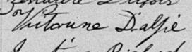 Elle est aussi connue sous le nom de Victorine Dalpé 1, 2, 3, 4, 5, 6, 7. Elle est aussi connue sous le nom de Victoria Dalpé 8. Elle est baptisée Victorine Delpée 9.