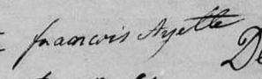 Il est aussi connu sous le nom de François Ayette dit Maleau 1. Il est aussi connu sous le nom de Francois Ayette 2. Il est aussi connu sous le nom de François Ayet dit Maleau 3. Il signe François Ayette 4. Il signe François Ayette dit Malo 5. Il signe Frs Malo 3. Il est aussi connu sous le nom de François Ayet 4, 5. Il est le fils de Jean-Baptiste Hayet 4, 5 et Desanges Quintin 5.