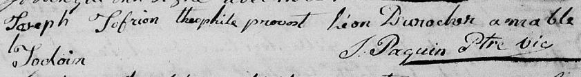 Il est présent lors de l'inhumation de Marie Anne La Côste le 19 octobre 1814 à Sainte-Anne, Varennes, Montérégie, Québec, Canada par Jacques Paquin 1. Il est présent lors de l'inhumation de Marie Céleste Bissonet le 15 février 1815 à Sainte-Anne, Varennes par Jacques Paquin 2. Il est présent lors de l'inhumation de Anonyme Champagne le 18 mars 1815 à Sainte-Anne, Varennes par Jacques Paquin 4. Il est présent lors de l'inhumation de Marie Honoré Petit le 3 avril 1815 à Sainte-Anne, Varennes par Jacques Paquin 5. Il est présent lors de l'inhumation de Marie Sophie William le 11 avril 1815 à Sainte-Anne, Varennes par Jacques Paquin 6. Il est présent lors de l'inhumation de Marie Emérance Bréard le 25 avril 1815 à Sainte-Anne, Varennes par Jacques Paquin 7. Il est présent lors de l'inhumation de Joseph Petit le 7 mai 1815 à Sainte-Anne, Varennes par Jacques Paquin 10. Il est présent lors de l'inhumation de Celeste Senécal le 2 juillet 1815 à Sainte-Anne, Varennes par Francis-Joseph Deguise 8. Il est présent lors de l'inhumation de Angelique Brodeur le 30 mars 1827 à Sainte-Anne, Varennes par François-Paschal Porlier 9. Il est présent lors de l'inhumation de Louise Messier le 20 avril 1840 à Sainte-Anne, Varennes par Patrick Burke 3.