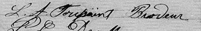 Il est aussi connu sous le nom de Louis-Antoine Toussaint Brodeur 1. Il est aussi connu sous le nom de Toussaint Brodeur 2, 3, 4. Il est aussi connu sous le nom de Antoine Brodeur 5. Il est baptisé Antoine Toussaint Brodeur 6, 7. Il signe Louis Antoine Toussaint Brodeur 1, 8, 9, 10, 11, 12, 13, 14, 15. Il signe L A Tt Brodeur 8. Il signe L. A. Toussaint Brodeur 2, 11, 15, 16. Il signe L. A. T. Brodeur 3, 7, 12, 17, 18, 19, 20, 21, 22, 23, 24, 25, 26, 27. Il signe L. A. T Brodeur 14. Il est aussi connu sous le nom de Écuyer L. A. Toussaint Brodeur 28. Il est le fils de Toussaint Brodeur 1, 2, 6 et Emilie Decelles 1, 6. Il est le filleul de Désanges Mongeau 6 et Toussaint Brodeur dit Lavigne 6.