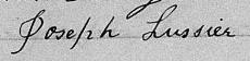 Il est aussi connu sous le nom de Jos. Lussier 1. Il est aussi connu sous le nom de Joseph Lussier fils 2. Il est aussi connu sous le nom de Christallin Lussier 3. Il est baptisé Joseph Lussier 2, 4, 5, 6, 7, 8, 9, 10, 11, 12, 13, 14, 15, 16, 17, 18, 19, 20, 21, 22, 23, 24, 25, 26, 27, 28, 29, 30, 31, 32, 33, 34, 35, 36, 37, 38, 39, 40, 41, 42, 43, 44, 45, 46, 47, 48, 49, 50, 51, 52, 53, 54, 55, 56, 57, 58, 59, 60, 61, 62, 63, 64, 65. Il signe J. Lussier 7, 15. Il signe Joseph Lussier père 45, 50. Il est le fils de Joseph Antoine Lucier 4, 7, 30, 33, 38 et Marie Théophile Provot 4, 7. Il est le filleul de Marie Louise Comptois 4 et François Malépart 4.