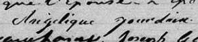 Elle est aussi connue sous le nom de Angélique Jourdain 1, 2, 3, 4, 5, 6, 7, 8, 9, 10, 11. Elle est aussi connue sous le nom de Marie Angellique Jourdin 12. Elle signe Angelique Jourdain 1, 2, 3, 5, 6, 7, 13, 14. Elle signe Agelique Jourdain 4.