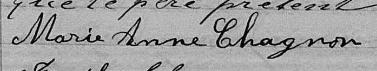 Elle est la marraine de Pierre Chrysologue Chagnon 3. Elle est la marraine de Marie Marguerite Eve Chagnon 4.