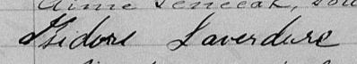 Il est aussi connu sous le nom de Isidore Laverdure 1, 2, 3, 4, 5, 6, 7, 8, 9, 10, 11, 12, 13, 14, 15, 16, 17, 18, 19, 20, 21, 22, 23, 24, 25, 26, 27, 28, 29, 30, 31, 32, 33, 34, 35. Il est aussi connu sous le nom de Isidore Joachim dit Laverdure 5, 9. Il est baptisé Isidore Joachim 36, 37, 38. Il signe I. Laverdure 2. Il signe Isïdore Laverdure 24. Il est le fils de Isidore Joassin 5, 8, 10, 36 et Julie Charbonneau 5, 36. Il est le filleul de Geneviève Jodoin 36 et Narcisse Jodoin 36.