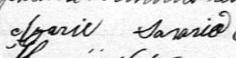 Il est baptisé Azarie Savariat 1, 2, 3, 4, 5. Il signe Azarie Savaria 2, 4, 6, 7, 8, 9, 10, 11, 12, 13, 14, 15, 16, 17, 18, 19, 20, 21, 22, 23, 24, 25, 26, 27, 28, 29, 30, 31, 32, 33. Il signe Azare Savarie 10. Il est le fils de Ambroise Savaria 1, 2, 9 et Zoé Choquet 1, 9. Il est le filleul de Marie Eulalie Choquet 1 et Joseph Choquet 1.