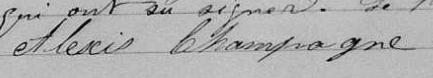 Il est aussi connu sous le nom de Alexis Champagne 1, 2, 3. Il est aussi connu sous le nom de A. Fugère 4. Il est aussi connu sous le nom de Alexis Fugères 3. Il est baptisé Alexis Fugère 5, 6.