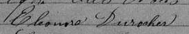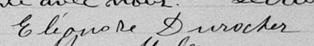 Elle est aussi connue sous le nom de Eléonore Desrocher 1. Elle est aussi connue sous le nom de Léonore Brien 2. Elle est aussi connue sous le nom de Eléonore Brien dite Des Rochers 3. Elle est aussi connue sous le nom de Eleonore Durocher Malo 4. Elle est aussi connue sous le nom de Eléonore Brien dite Desrochers 5, 6, 7, 8, 9. Elle est aussi connue sous le nom de Eléonore Desrochers 10, 11, 12, 13, 14, 15. Elle est aussi connue sous le nom de Eléonard Brien 16. Elle est aussi connue sous le nom de Eléonore Durocher 17. Elle est baptisée Eléonore Brien 18, 19. Elle signe Eleonore Durocher 1, 3. Elle est la fille de Régis Brien-Desrochers 3, 18 et Marguerite Fiserault dite Laramée 3, 18. Elle est la filleule de Rosalie Brien dite Desrochers 18 et Louis Malo 18.