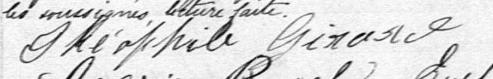 Il est aussi connu sous le nom de Theophile Girard 1, 2, 3, 4, 5, 6, 7, 8, 9, 10, 11, 12, 13. Il est aussi connu sous le nom de Théaphile Girard 14. Il est aussi connu sous le nom de Théophiles Girard 4, 15. Il est aussi connu sous le nom de Théophile Girar 16. Il signe T Girard 17. Il est aussi connu sous le nom de Théophile Girard 1, 2, 5, 9, 13, 17, 18, 19, 20, 21, 22, 23, 24, 25, 26, 27, 28, 29, 30, 31, 32, 33, 34, 35, 36, 37, 38, 39, 40, 41, 42, 43, 44, 45, 46, 47, 48, 49, 50, 51, 52, 53, 54, 55, 56, 57, 58, 59, 60, 61, 62, 63, 64, 65, 66, 67, 68, 69, 70, 71. Il est le fils de Hypolyte Girard 4, 18, 24, 25, 33 et Marie Félicité Monjeau 25.