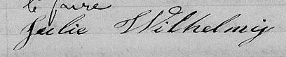 Elle est aussi connue sous le nom de Julie Wilhelmi 1, 2. Elle est aussi connue sous le nom de Julie Vilimie 3, 4. Elle est aussi connue sous le nom de Julie Bélimie 5. Elle est aussi connue sous le nom de Julie Wilelmi 6. Elle est aussi connue sous le nom de Julie Vilimi 7, 8. Elle est aussi connue sous le nom de Julie Wilelmie 9. Elle est aussi connue sous le nom de Julie Vilhimy 10, 11, 12, 13, 14. Elle est aussi connue sous le nom de Julie Wellelmi 15. Elle est aussi connue sous le nom de Julie Wilhemy 16. Elle est aussi connue sous le nom de Julie Vilémie 17. Elle est aussi connue sous le nom de Julie Willemy 18. Elle est aussi connue sous le nom de Julie Wilhelmy 2, 19, 20. Elle est aussi connue sous le nom de Julie Willhelmye 21. Elle est aussi connue sous le nom de Julie Villini 22. Elle est aussi connue sous le nom de Julie Wilhelmy 23. Elle est aussi connue sous le nom de Julie Wilhemie 24. Elle est aussi connue sous le nom de Julie Whilhelmy 20. Elle est aussi connue sous le nom de Julie Payette 25, 26. Elle est aussi connue sous le nom de Julie Willelmi 27. Elle est la fille de George Wilhelmi et Adelaide Foucher.