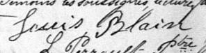 Il est aussi connu sous le nom de Louis Blain 1, 2, 3. Il signe L Bain 1. Il est le fils de Antoine Blain 1 et Julie Dosois 1.