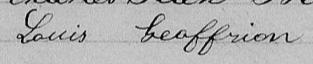 Il est aussi connu sous le nom de Louis Géoffrion 1. Il est baptisé Louis Geoffrion 2, 3, 4, 5, 6, 7, 8, 9, 10, 11, 12, 13, 14, 15, 16, 17, 18, 19. Il signe L Geoffrion 10. Il est le fils de Jean Baptiste Geoffrion 2, 5 et Marie Sophie Brodeur 2. Il est le filleul de Julie Geoffrion 2 et Binjamin Jodoin 2.