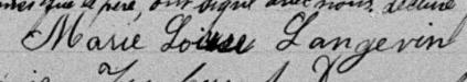 Elle est aussi connue sous le nom de Louise Langevin 1, 2, 3. Elle est aussi connue sous le nom de Marie Louise Richard 4, 5. Elle est aussi connue sous le nom de Marie-Louise Langevin 6, 7. Elle est aussi connue sous le nom de M. Louise Richard 8. Elle est baptisée Marie Louise Langevin 6, 9, 10, 11, 12, 13, 14, 15, 16, 17, 18, 19, 20, 21, 22, 23, 24, 25, 26, 27, 28. Elle signe Marie L. Langevin 27. Elle est la fille de Joseph Langevin 9, 10 et Adélaïde Hébert 9, 10. Elle est la filleule de Marie Louise Hebert 9 et Denis Choquet 9.