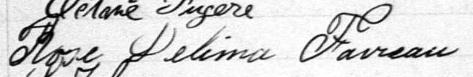 Elle est aussi connue sous le nom de Rose de Lima Favreau 1, 2, 3, 4, 5, 6, 7, 8. Elle est aussi connue sous le nom de A. Favreau 9. Elle est aussi connue sous le nom de Rose Delima Favreault Fugerre 10. Elle est aussi connue sous le nom de Adeline Favreau 11. Elle est aussi connue sous le nom de Rose de Lima Favreault 12. Elle est aussi connue sous le nom de Délima Favreau 13. Elle est aussi connue sous le nom de Rose-de-Lima Favreau 14. Elle signe Rose Delima Favreau 1, 8. Elle signe Rose Delima Favreault 2. Elle signe Rose Délima Favreau 5, 6. Elle est la fille de Antoine Favreau 2 et Desange Cédina 2.