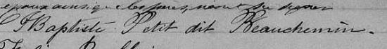 Il est aussi connu sous le nom de J Baptiste Petit dit Beauchemin 1.