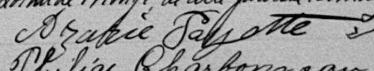 Il est aussi connu sous le nom de Azarie Payette 1, 2, 3, 4, 5, 6, 7, 8, 9, 10, 11, 12, 13, 14, 15, 16, 17, 18, 19, 20, 21, 22, 23, 24, 25, 26, 27, 28, 29, 30, 31, 32, 33, 34, 35, 36, 37, 38, 39, 40, 41, 42, 43, 44, 45, 46, 47, 48, 49, 50, 51, 52, 53, 54, 55, 56, 57, 58, 59, 60. Il est aussi connu sous le nom de Louis Azarie Payette 7, 61, 62. Il est aussi connu sous le nom de Louis Payette 63, 64. Il est aussi connu sous le nom de Asarie Payette 8. Il est aussi connu sous le nom de Azarie Payet 9. Il est aussi connu sous le nom de Azarie L. Payette 65. Il est baptisé Louis Payet 66. Il signe L. Azarie Payette 63. Il signe A Payette 28. Il est le fils de Louis Payet 11, 61, 66 et Julie Wilhelmy 61, 66. Il est le filleul de Julie Meunier 66 et François Payet 66.