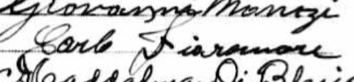 Il est présent lors du baptême de Vincenzo Rocco Manzi le 2 mars 1924 à Notre-Dame-de-la-Défense, Montréal, Île de Montréal, Québec, Canada par Père G. M. Vangelisti o.s.m. 2. Il est présent lors du baptême de Guglielmo Antonio Manzi le 26 septembre 1926 à Notre-Dame-de-la-Défense, Montréal par Zanoti Mafrimi 3. Il est présent lors du baptême de Antonio Manzi le premier décembre 1929 à Notre-Dame-de-la-Défense, Montréal par P. Ig. M. Patrinrelin OSM 1.